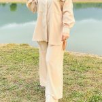 سرشانه افتاده، آستین پیلی دار و مچی دکمه خور، جیب پاکتی، یقه مردونه، صفر تا صد دکمه مخفی، تکنیک دوخت هلال پهلوی لباس